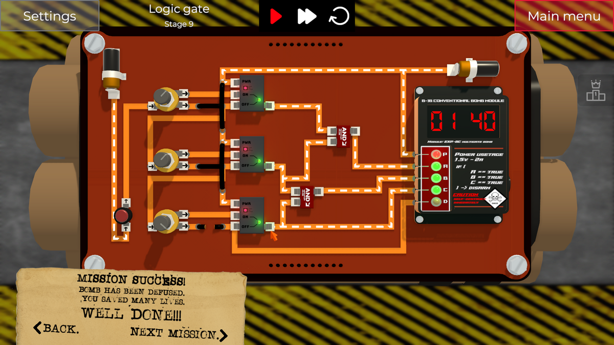 1in2outスイッチをFlipFlop GateのONポート側に向くように切り替えていけば、意外にあっさりクリアできます。