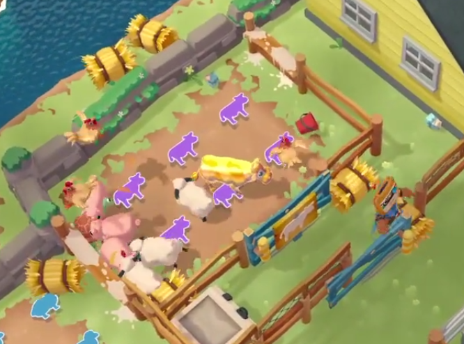 一番厄介なのは「鶏」。柵に入れておいても運が悪いと飛び跳ねて逃げていくので、最後にまとめていれる方がいいかもしれません。
