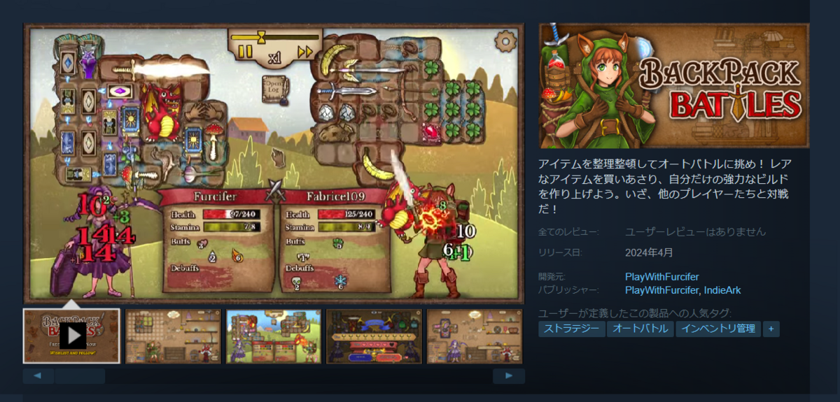 このゲームをプレーした同僚から面白いよと勧められたこともあり、ちょっとやってみたのが、この「Backpack Battles」。