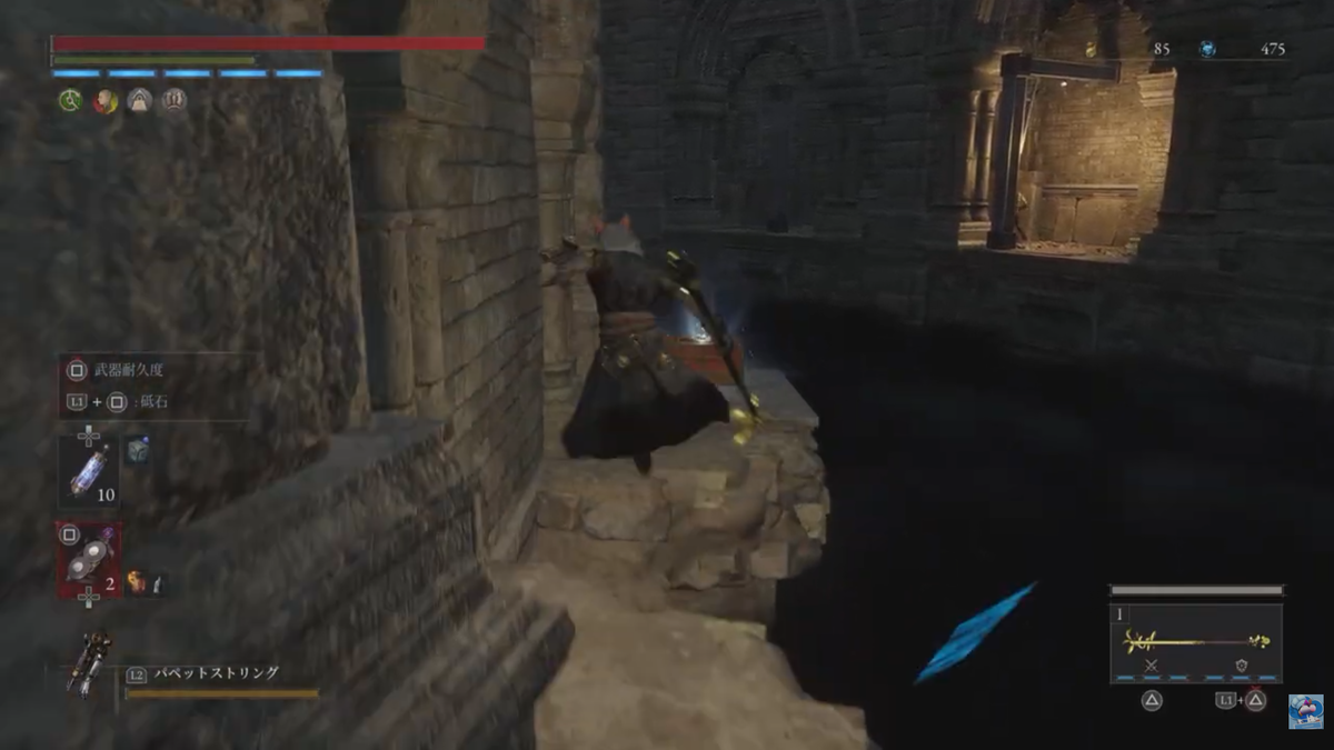 自分はこういう細かい操作が苦手なので、飛ぶ瞬間に変な方向にアナログレバーが入ってしまって、まっすぐ飛べずに距離が足りず、そのまま落下死することも多いです。