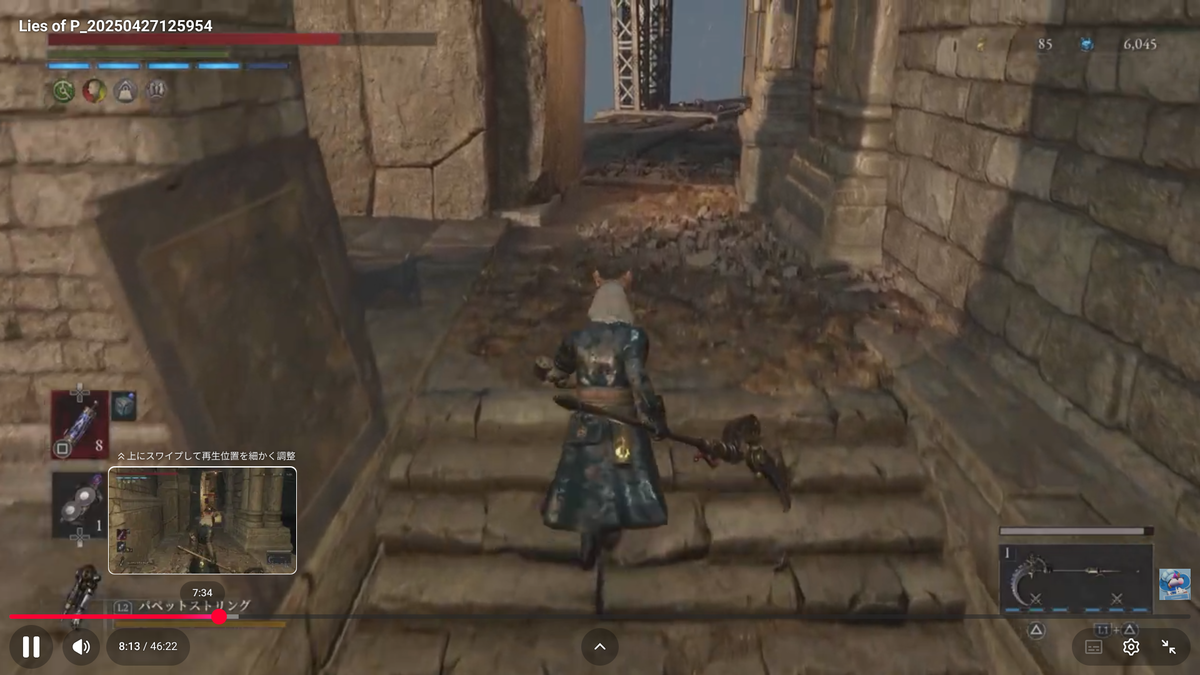 雰囲気的に階段の上がボス戦のようですね…。長かった「Lies of P」も、いよいよこのゲームも大詰めということでしょうか。