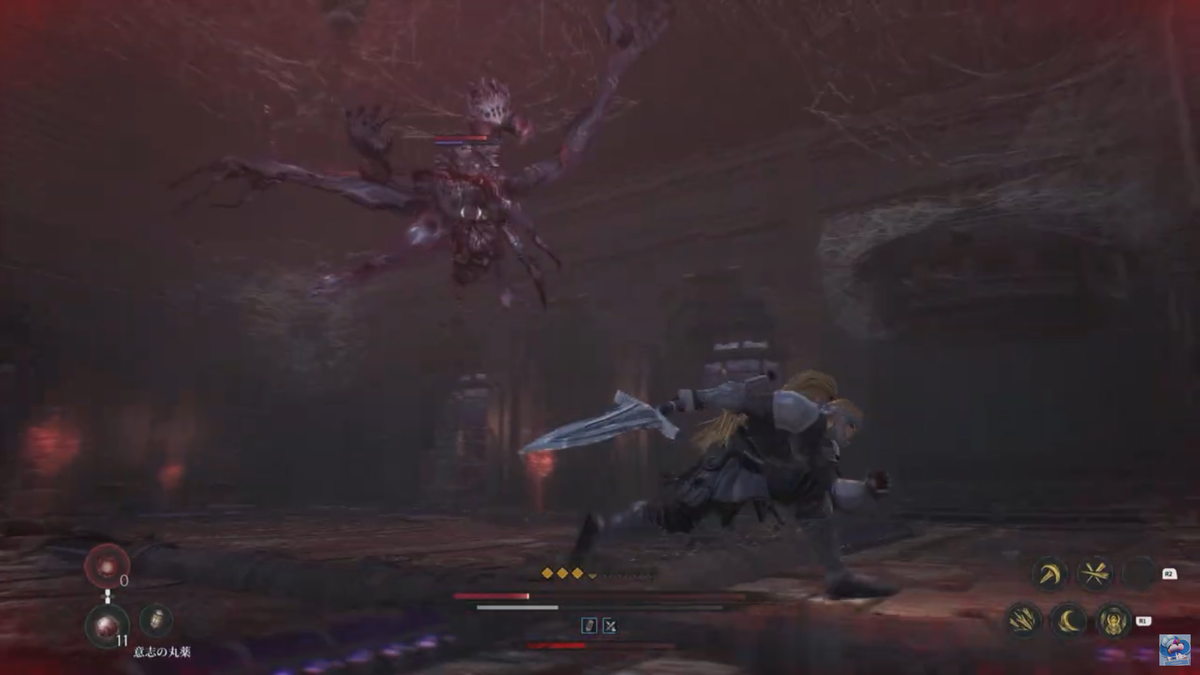 結局、糸で捕まって動きを封じられると、相手の攻撃を的確に食らわされて大ダメージですし、普通に攻撃も重いので、ジャストガードではなくガードでは、とても気力が持ちません・・