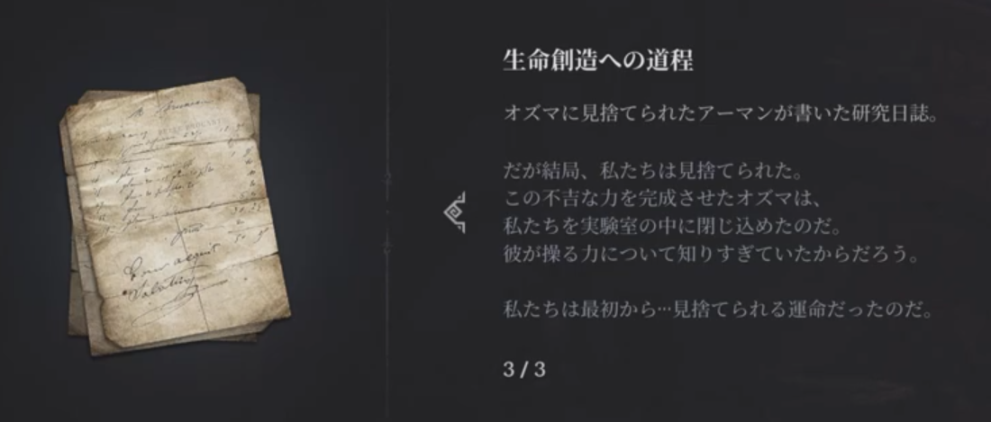 あとは、オズマに協力していたと思われる人物の手記ですが…
