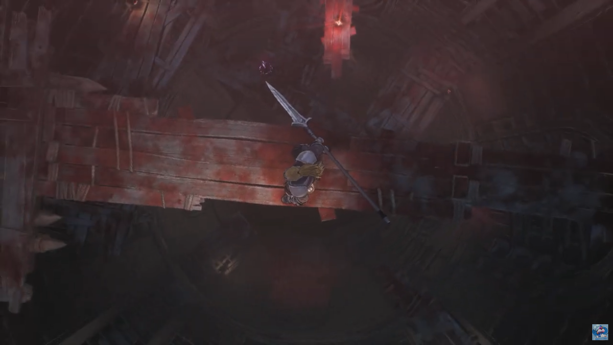 この先は、吹き抜けのエリアを足場を伝って降りていくゾーン。