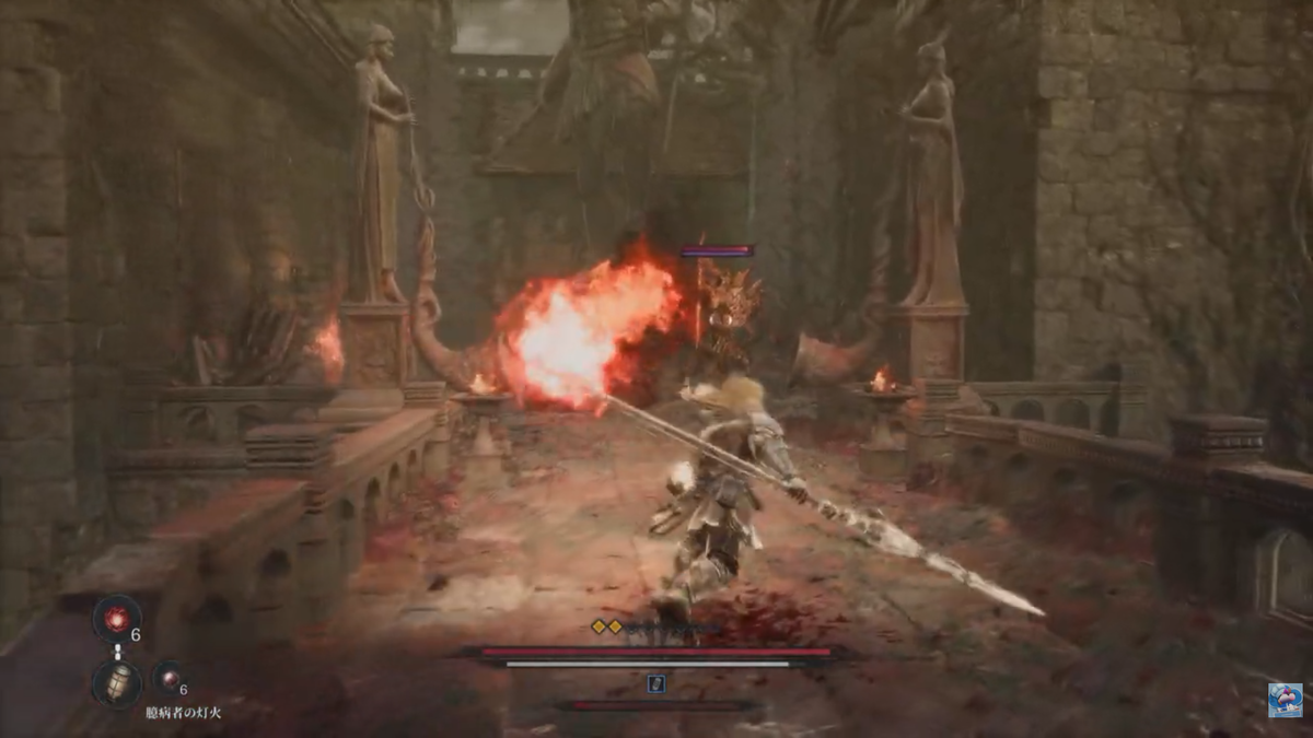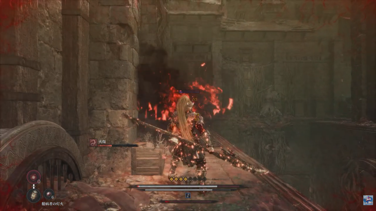 飛んでくる火の玉はガードしても火炎ゲージが蓄積してしまいますし、更に蓄積すると「火傷」になり、この状態になるともうお手上げ。