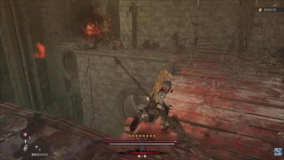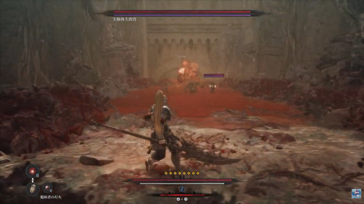 大量の亡者が待ち構えており、背後には頑丈な失敗作が炎を飛ばしてくるので、正直、かなり苦しいです。