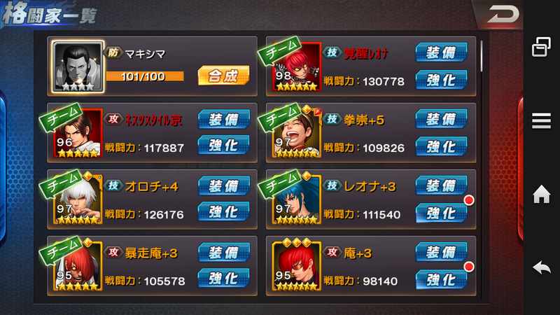 2017-09-10 KOF'98 UMOL マキシマ解禁! #携帯アプリ ゲーム ここのところ開催されていた運動会イベントでコツコツ、マキシマの破片を交換。 ようやく破片が貯まり、マキシマが解禁です。 (ただし、使うわけではありませんが…) 好きなキャラということで頂上決戦では結構選択率は高かったりします。 防御壁キャラとしてはかなり優秀ですからね。 これで、K'チーム(K'、ウィップ、マキシマ)が全員揃いました。